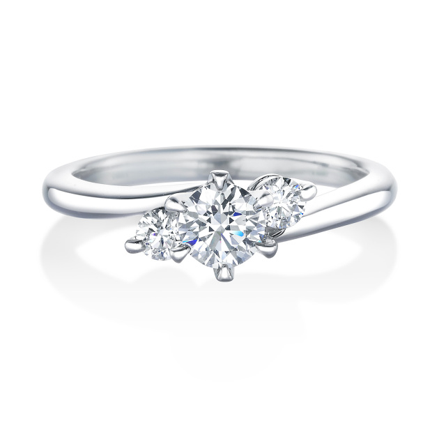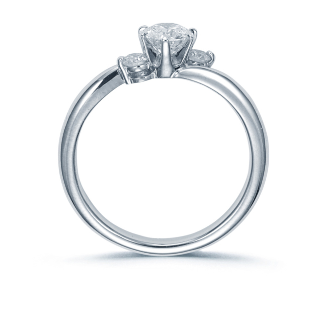 センターダイヤの輝きをさらに贅沢な印象に美しく演出するようにサイドダイヤがホールドするデザイン。センターダイヤとサイドダイヤで華やかな印象ながらシンプルなデザインは、長く着用するに相応しい普遍のスタイルと永遠の輝きを提供します。