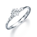 脇に2石ずつダイヤを配置してもリングアームが細めになっていて華奢な印象を与えるデザインが人気のエンゲージリングです。